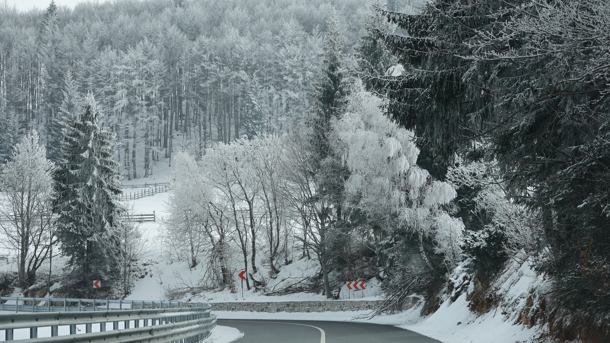 Imagen de encabezado (e imagen anterior, portada de esta entrada): las nieves y bosques de los Cárpatos en la ruta desde Brasov hacia el Danubio y la frontera con Bulgaria.